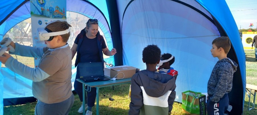 Sredinom mjeseca, 11. listopada 2025., aktivnosti su se preselile u Opatiju, gdje smo sudjelovali na Opatijskom dječjem vikendu. U vedroj i opuštenoj atmosferi, od 10:00 do 13:00 sati, predstavili smo Mobilni multimedijalni ZEZ centar kao spoj tehnologije, umjetnosti i edukacije. Djeca su kroz interaktivne radionice istraživala umjetnu inteligenciju i multimediju, učila kroz igru i slobodno eksperimentiranje, dok su se prostori događanja ispunili smijehom, znatiželjom i kreativnim idejama.
